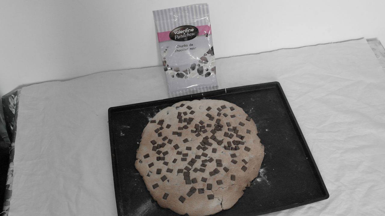Avec les Chunks de chocolat noir que j'ai reçus de Valentine&Patachou, j'ai fait pour le goûter un cookie géant.